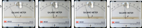 各組み合わせにおける検流計の針の振れ