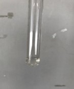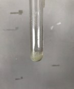 難溶性のハロゲン化銀の沈殿の色を覚えさせたい。「今回実験してないけどフッ化銀の沈殿って何色?」「ハロゲン化水素はすべて強酸?」と生徒に聞くと,しばらく考えて黙り込んでしまう。フッ化銀だけは水溶性で沈殿しないこと。(電気陰性度の差が大きいためイオン結合性が強い。)フッ化水素酸だけはガラス(SiO2)は溶かすけど,弱酸であることをしっかり定着させたい。有名なAgClの白色沈殿に対し,徐々に黄色が強くなっていく沈殿になることを定着させたい。