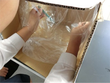 ② 無菌箱に器具・培地・キクの花弁を入れ,除菌スプレーで吹きつけ箱内を除菌する。
