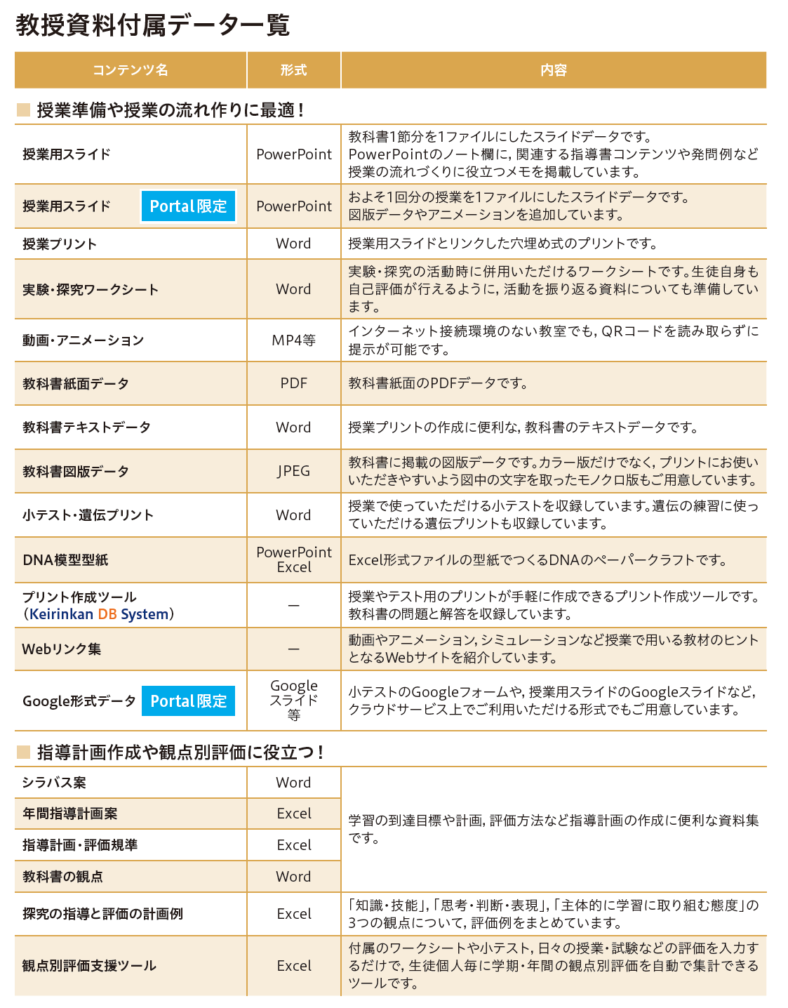 - 授業用スライド、授業プリント、実験・探究ワークシートWord