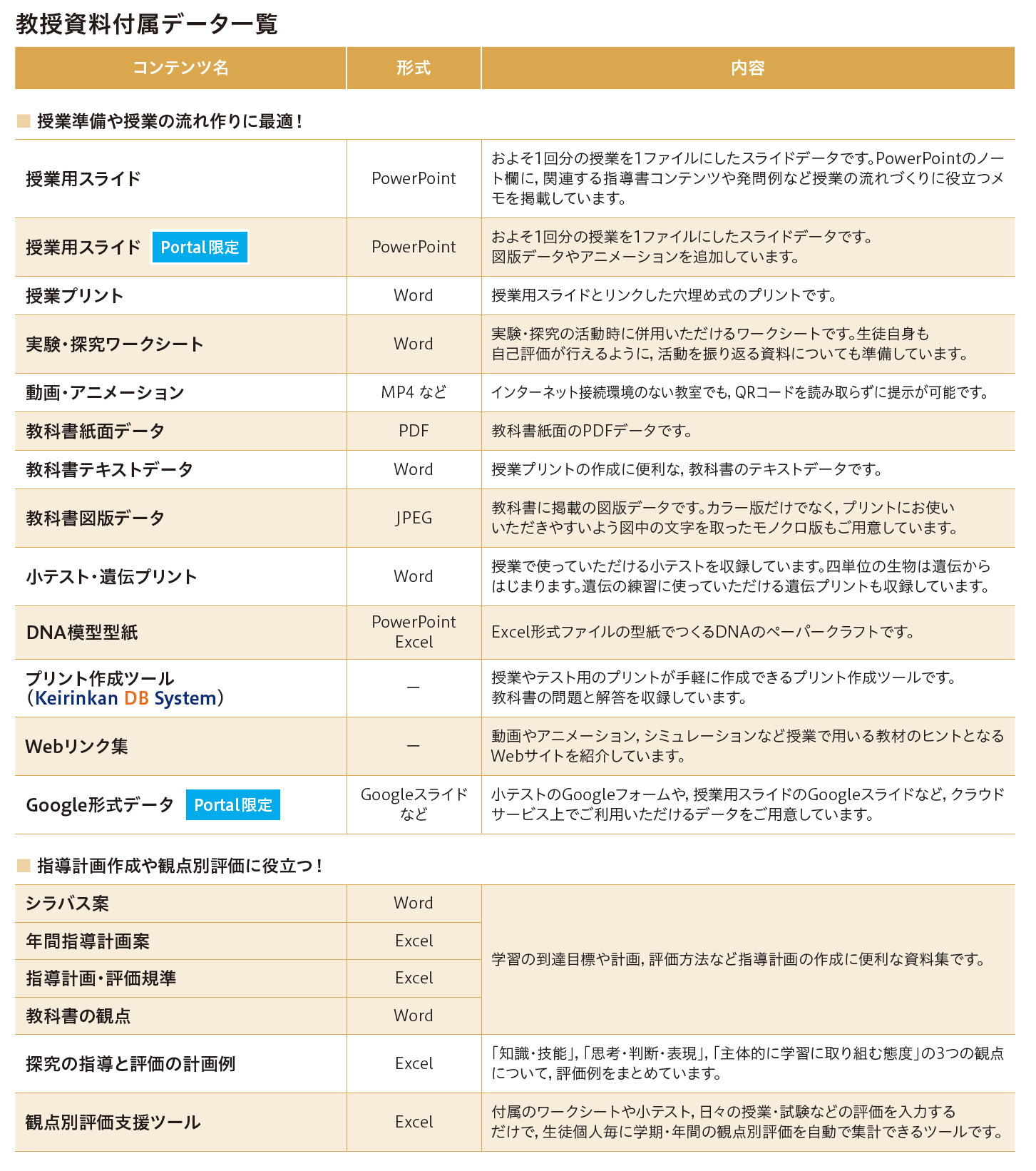 - 授業用スライド、授業プリント、実験・探究ワークシートWord