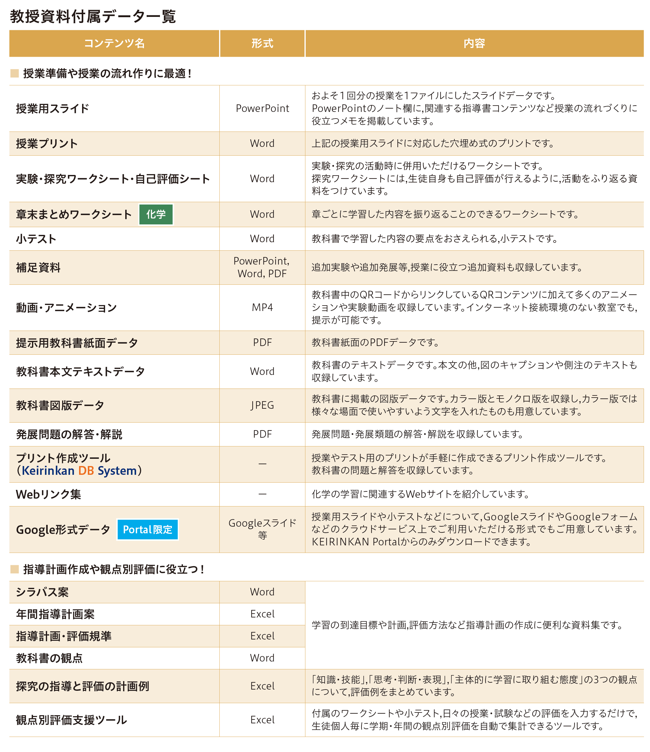 - 授業用スライド、授業プリント、実験・やってみよう・探究ワークシートWord、補足資料