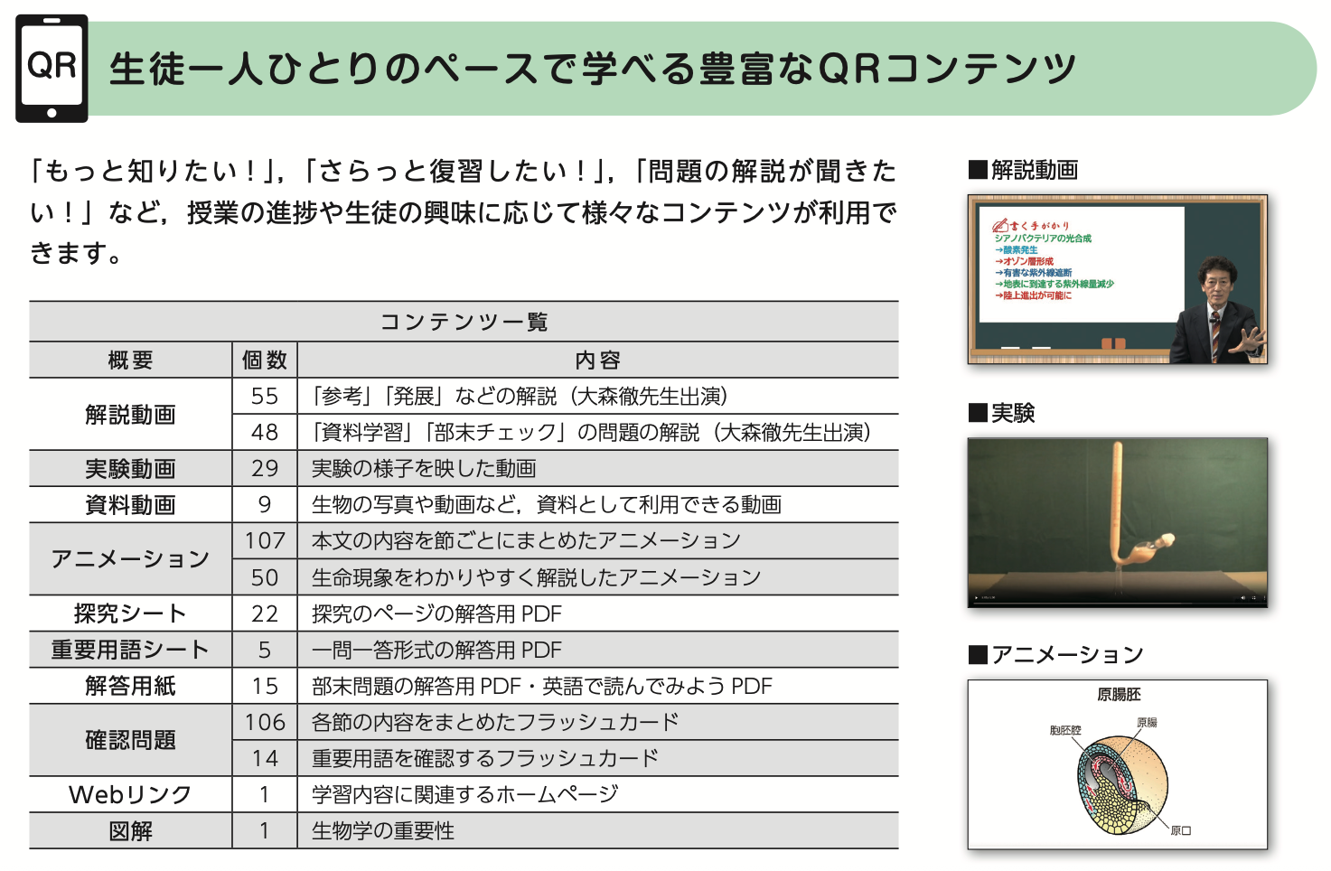 - QRコードからは,フラッシュカードや解説動画,論述問題の原稿用紙が利用可能