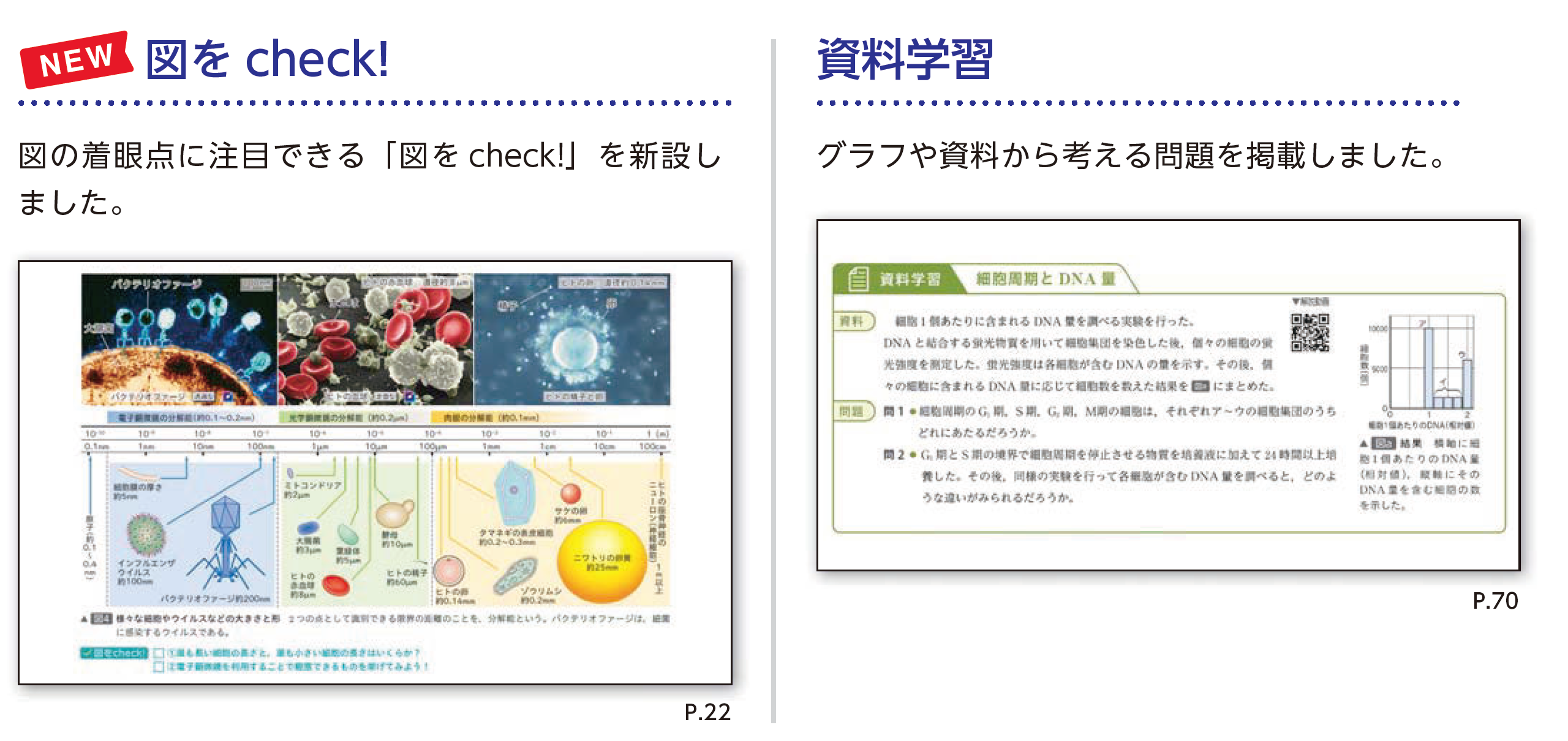 図の着眼点に注目できる「図を check!」や,作図のトレーニングとして「図で説明しよう!」を新設しました。