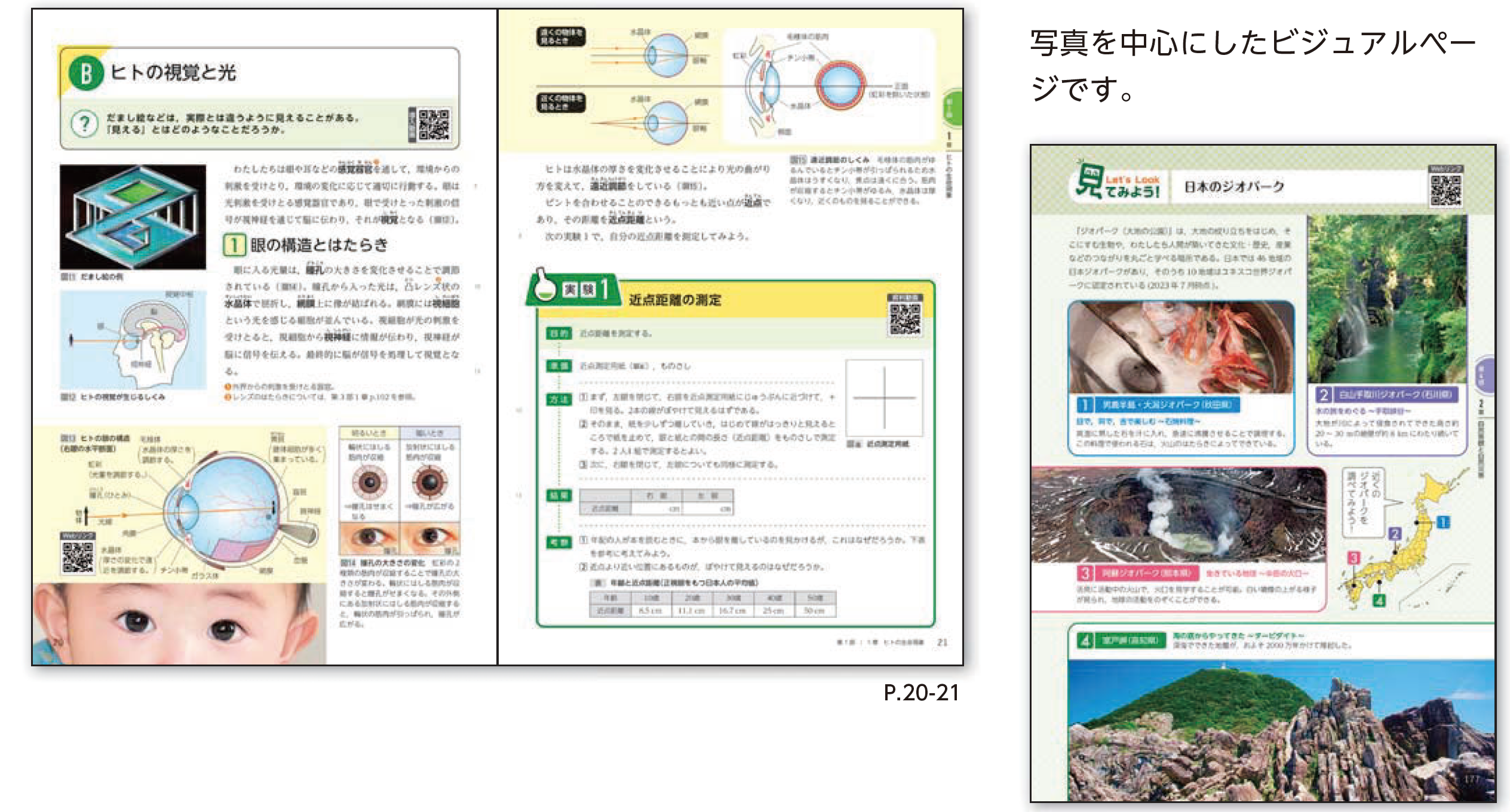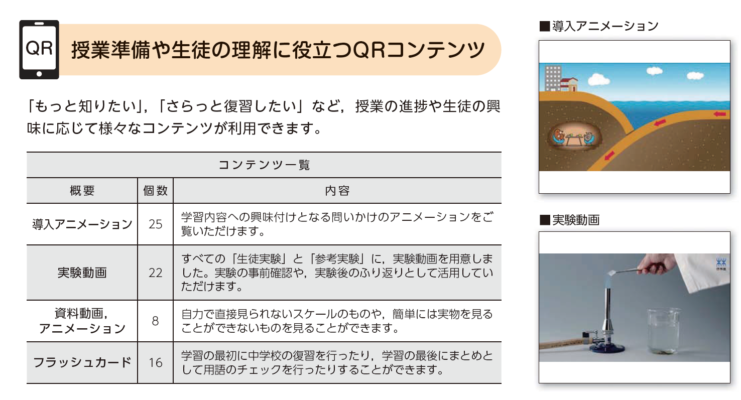 - 全節で教科書の導入に対応したコーナーとQR コードからアニメーションが視聴可能