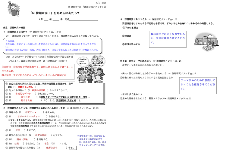図1 『「SS課題研究Ⅰ」を始めるにあたって』ワークシート