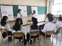 7月と2月には上級生の研究発表を聴く機会がある(「SSH成果発表会」における第3学年の研究発表(7月),「SSH中間発表会」における第2学年の中間発表(2月))。発表内容を理解した上で積極的に質問することが望まれるため,事前に聴く発表を決め,ポスターを見た上で,質問事項を考えるようにしている。
