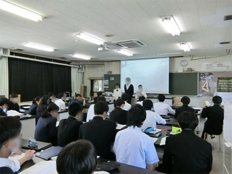 7月の中間報告会Ⅰ,10月の中間報告会Ⅱ,12月の分野別発表会,1月の校内発表会の年間に4回,本校に来校していただき,生徒の発表を聞き,様々なアドバイスをしていただいている。アドバイスの内容は,高校で学習する内容を超えた専門知識・手法の指導や論文,アブストラクトの書き方,発表の仕方等である。