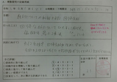 図3 理数探究の記録 個人記録