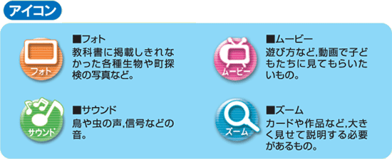 | コピーして配ればすぐに使えるカードの雛型集です。先生方に自由に加工していただけるように「わくわく・いきいきデータ集」にMicrosoft Word形式で収録しています。 |