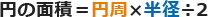 円の面積=円周×半径÷2