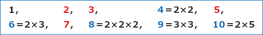 素数は,「1とその数でしか割り切れない数」という言い方をします(素数に1は含みません)。