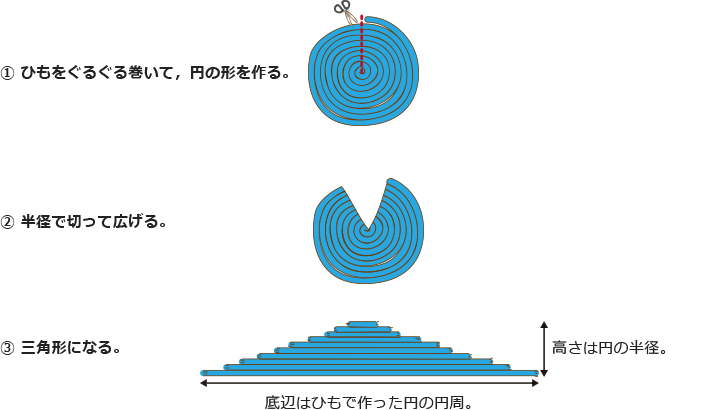 方法2でも,方法1と同じように,「円の面積=半径×半径×円周率」という,見慣れた式をつくることができます。
