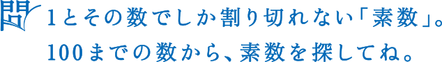 2,3,5,7のように,かけ算で分けられない数を素数といいます。