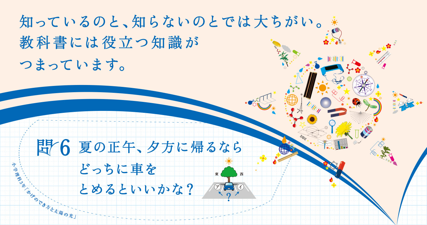 問題の季節は夏、時間はお昼ごろなので、図書館へ行ったときには、太陽は南の空の真上に近い位置にあります。