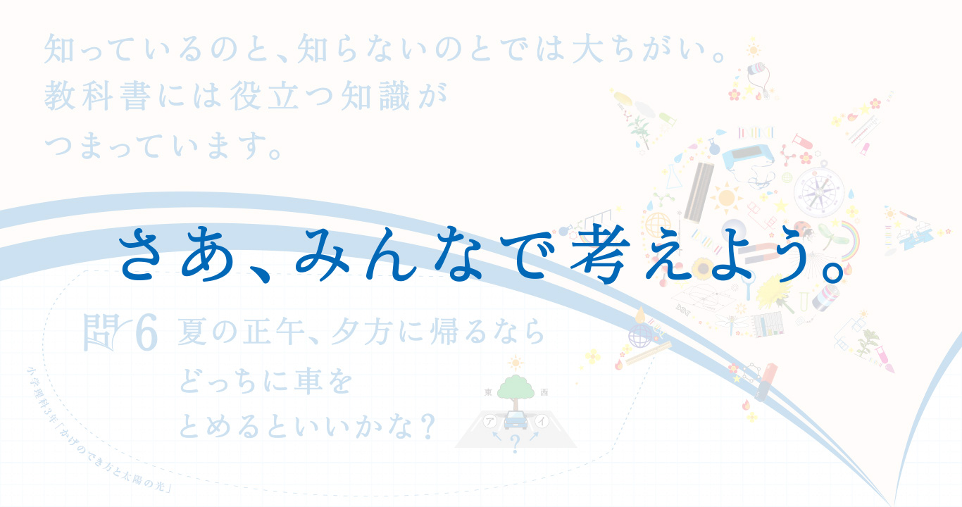 かげは太陽の反対側にできるので、太陽が西の空にあるときは東側にできます。