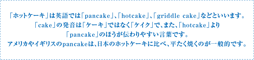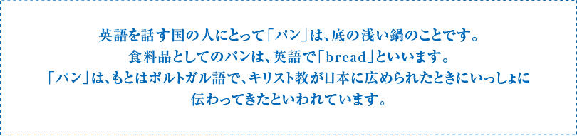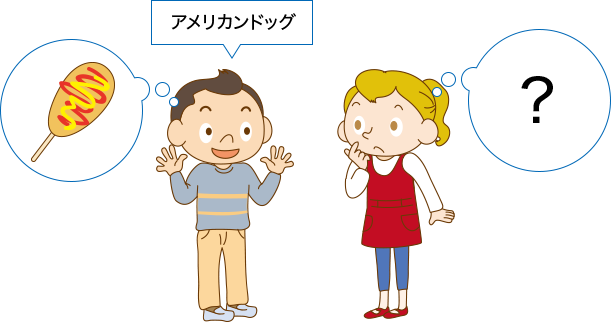 同じようにカタカナで表された「パン」、「ホットケーキ」、「アメリカンドッグ」も英語のようですが、
