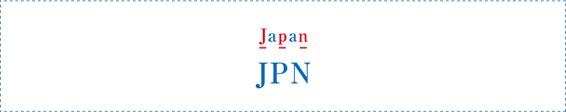 アルファベット3文字では「JPN」、アルファベット2文字では「JP」です。2文字のISOコードはインターネットでも