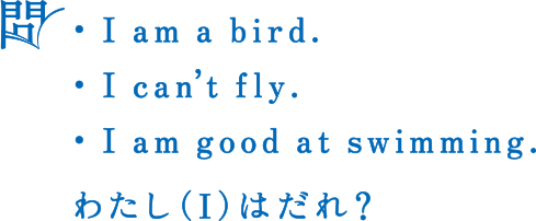 3つのヒントから、「わたし(I)」がだれかを考えましょう。