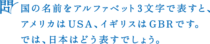 国の名前をアルファベットで略したものには、IOCコードのほかにも、