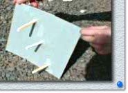 | 1 かげは日光をさえぎるものがあると、太陽のはんたいがわにできます。 2 かげのでき方を利用して、3本のかげがつながるようにしてみましょう。 3 かげをつないで直線にすることができるでしょうか。 |