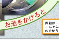 | 3 | 風船にお湯をしずかにかけていきましょう。 |