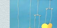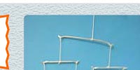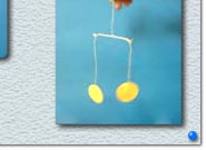 てんびんは、支点から左右に同じきょりの位置に、同じ重さのおもりをつるしたとき、つり合います。 支点をささえているてんびんを、上から糸でつるしても、同じようにつり合うことを利用して、 モビール作りにちょうせんしてみよう。 両はしにちがった重さのおもりをつけたときでも、つり合うところをさがしてみましょう。 |