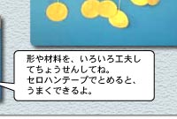 | 2 | おもりにする色画用紙を、2まい1組で切りぬき、糸をはさんではりあわせる。 |