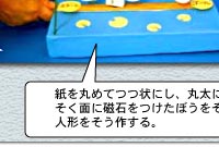 太くてじょうぶなもの。はり金ハンガーでもよい。 フィルムケースやビー玉、木切れなど じょうぶなもの( タコ糸など) 2m 台としてつかうので、丈夫なもの 小さいもの、人形とぼうにとりつけます。 四角いもので、30cmぐらいのもの。 |