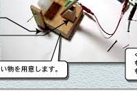 | 1 電磁石の力を利用した『電磁石クレーン』を作りましょう。 2 コイルに電流を流すと電磁石になり、流さないと元にもどる性質を生かしましょう。 3 どのくらいのものをひきつけて、持ち上げることができるでしょうか。 |