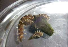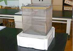 ペットボトルの底を切り落として,その中に雌雄の一方を入れておいたら成功した。箱を取ってペットボトルをはずしたら,5〜15分で産卵した。10グループのうち8グループが産卵を観察できた。 後日,段ボールで覆わずに実験してみても,産卵行動が見られた。ペットボトルで雌雄の一方を囲うだけでも十分であることが分かった。
