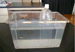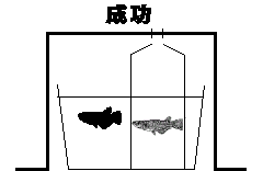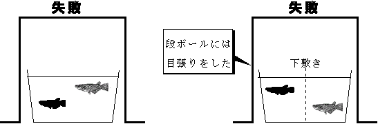 ![]() V字のミニ水槽にいるメダカ ◎実験開始