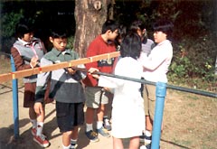 「てこ」を使えば重い物も小さな力で動かすことができる。このことは,子どもたちは何気なく気づいているようである。このことが科学的な見方になるための一方策としては,やはり体感が大切であり,その体感したことを自分なりに科学観に置き換えることが重要だと思われる。そのためには,体感したことを科学的に何かの事象に置き換えてみることが有効だと思われる。