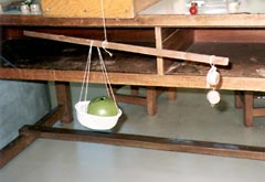 | まずは,かごの重さを量ります:計算で。 次にスゥィーティーをのせます。 |