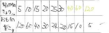 | ○ | 重さ×距離=一定の立式は理解している。 |