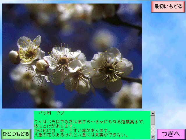 また,この植物図鑑をCDロムに収め学校に記念品として残し,個人としても持ち帰りができる卒業製作とすることとし,計画を進めた。その際,パソコンがない家庭でも利用できるよう,校内音楽会での合唱・合奏・校歌を,同じCDロムに収めCDラジカセ等でも聴けるようにした。