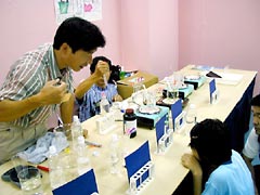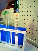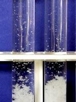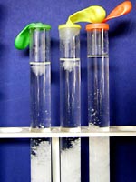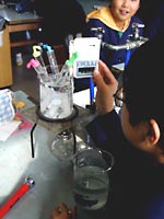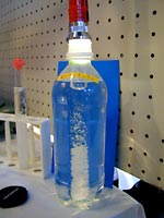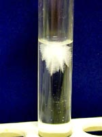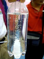 4.おわりに 小さな子どもには,「星の赤ちゃんが生まれてくるからよ〜く見ておいてね。」と言って集中してもらいます。また,水面直下に成長する結晶が,ちょうど逆さ向きの針葉樹のように見えるので,それを「ふるさとの森」と名づけ,「お星様がふるさとの森に帰っていって,元気をもらってまた落ちてくるんだよ。」などと言いながら,私自身もメルヘンを楽しんでいます。 女の子にはもちろん,男の子にも大歓迎される実験なので,ぜひトライしてみてください。塩化アンモニウムは,毒・劇物指定もなく,理科教材屋で簡単に手に入ります。 (500g1500円ぐらい) ☆子どもの感想から(美しさと結晶が上下することにびっくりした子が多かった)