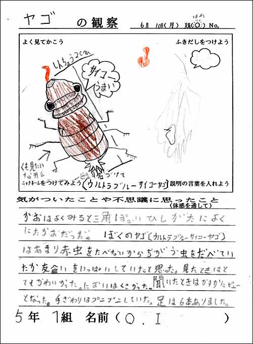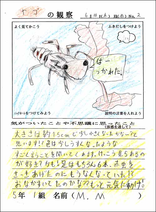 何か変化があるとすぐに教師に言いにきた。(脱皮,羽化,餌を食べない。等)