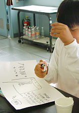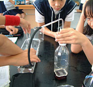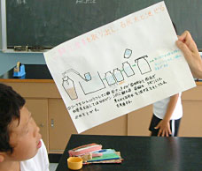 理科は覚える学問ではない。 時に知識を基に考えを組み立てる場合もあるが,知識はあくまでも結果としてついてくる。小学校では「なぜ,どうして?」という考え方を大切にしたい。本校では塾で知識を先におぼえている子もいるが,実験・観察を楽しみにしている児童も多い。 結果だけにこだわらず,学習の過程を大切にするために,授業があり,指導があることを忘れないようにしたい。このことは上記校内研究テ−マにつながっていくと思う。 理科ではこれまで「ものの燃えかたと空気」「動物のからだのはたらき」「植物のからだのはたらき」を学習してきている。この中でも,子どもたちの探究する力,応用する力を引き出すよう指導を心掛けた。 「ものの燃えかたと空気」では,二酸化炭素の存在をろうそくや石灰水を使って確かめたり,酸素の中でわりばしやスチールウールを燃やしたりした。実験用酸素ボンベも使ったが,多く使うと高くつくので,教師卓で酸素を発生させ,グループの代表に水上置換での集気を手伝わせた。ボンベを使うより,いかにも実験らしい装置に児童は興味をひかれたようである。 「動物のからだのはたらき」では,唾液ででんぷんを分解する実験をした。実験方法をノートに書いた後「実験がうまくいかない時は,どんな原因が考えられる?」と,失敗する原因を3つほど予想させた。実験がうまくいかなかった場合も「あーぁ,失敗してしてしまった」だけで終わらないように配慮したつもりである。一つの班は,でんぷんが残って発色してしまったが,原因が温度管理にあることに気づき,納得した様子であった。 「植物のからだのはたらき」では,児童はろ紙に葉をはさんで実験し,担任はアルコールを使った。幸い両方ともでんぷんがヨウ素液に反応して,結果がよくわかる実験となった。少し色がついたろ紙も時間がたつと薄い色に変わっていくことに興味を示した児童もいた。 本事例は「水溶液の性質」の単元を通して,校内研究テ−マ「確かな力をもって,学び続ける子どもの育成」にせまった。 2.「水溶液の性質」で大切にしたい学び