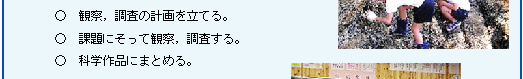 身近な自然とかかわることにより,問題を見出し,追究していく。 |