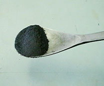 使い捨てカイロを破いて中の鉄粉を集めます。粒子はまあまあそろっているのですが,袋を切ると発熱してくっついてしまったりするので扱いが少々面倒です。 |