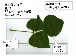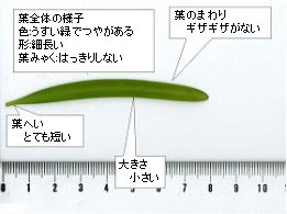 (葉全体の様子・色・形・葉脈・葉柄・大きさ・葉の周りの様子) |