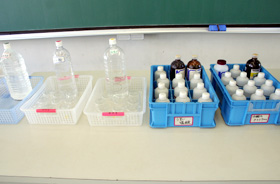 100mlビーカー:30個 身近な水溶液:30種類をそれぞれ10mlほど ガラス棒:30本 赤色リトマス紙:30枚×班の数(実際はたくさん) 青色リトマス紙:30枚×班の数(実際はたくさん) ピンセット:30本 ゴミいれ(袋):班の数 |