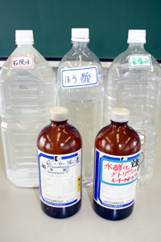 酸を中和して捨てる時,使い終わった石灰水が役立ちます。 |