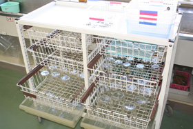 - 洗い終わったビーカーなどは,カートに入れて,乾かしましょう。