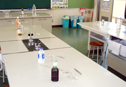 - 理科室の実験机は,4人グループでも十分可能です。それを3人で使うと,ゆとりが生まれ,落ち着いて取り組めます。
