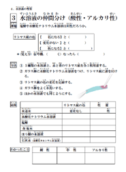 結果はそのつど記録し,使用したリトマス紙は,各班のゴミ入れ(袋)に捨てる。 (そのまま残しておくと,次の班は,結果がわかって面白くない。) |