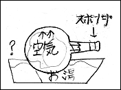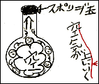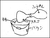| ・ | 空気のかさがふえるところがなくなって最後にスポンジが飛ぶ。 |