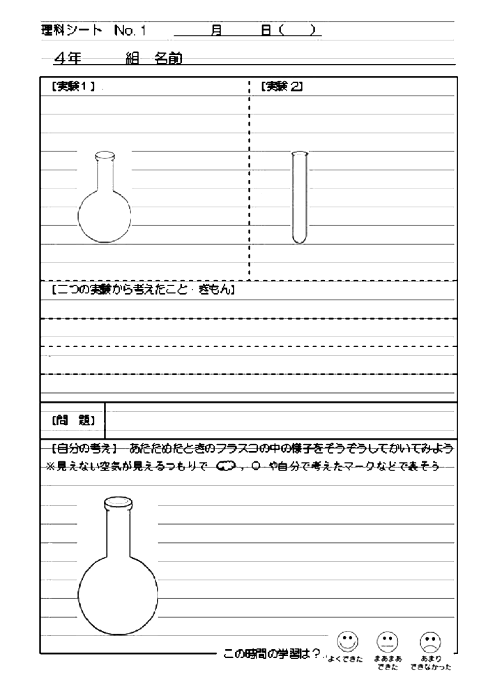 学習シートにフラスコの中の空気の様子を想像してかくことができるようした。