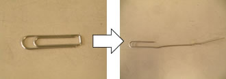 (2)電解槽を用意する。 @ゼムクリップの一部をのばす。